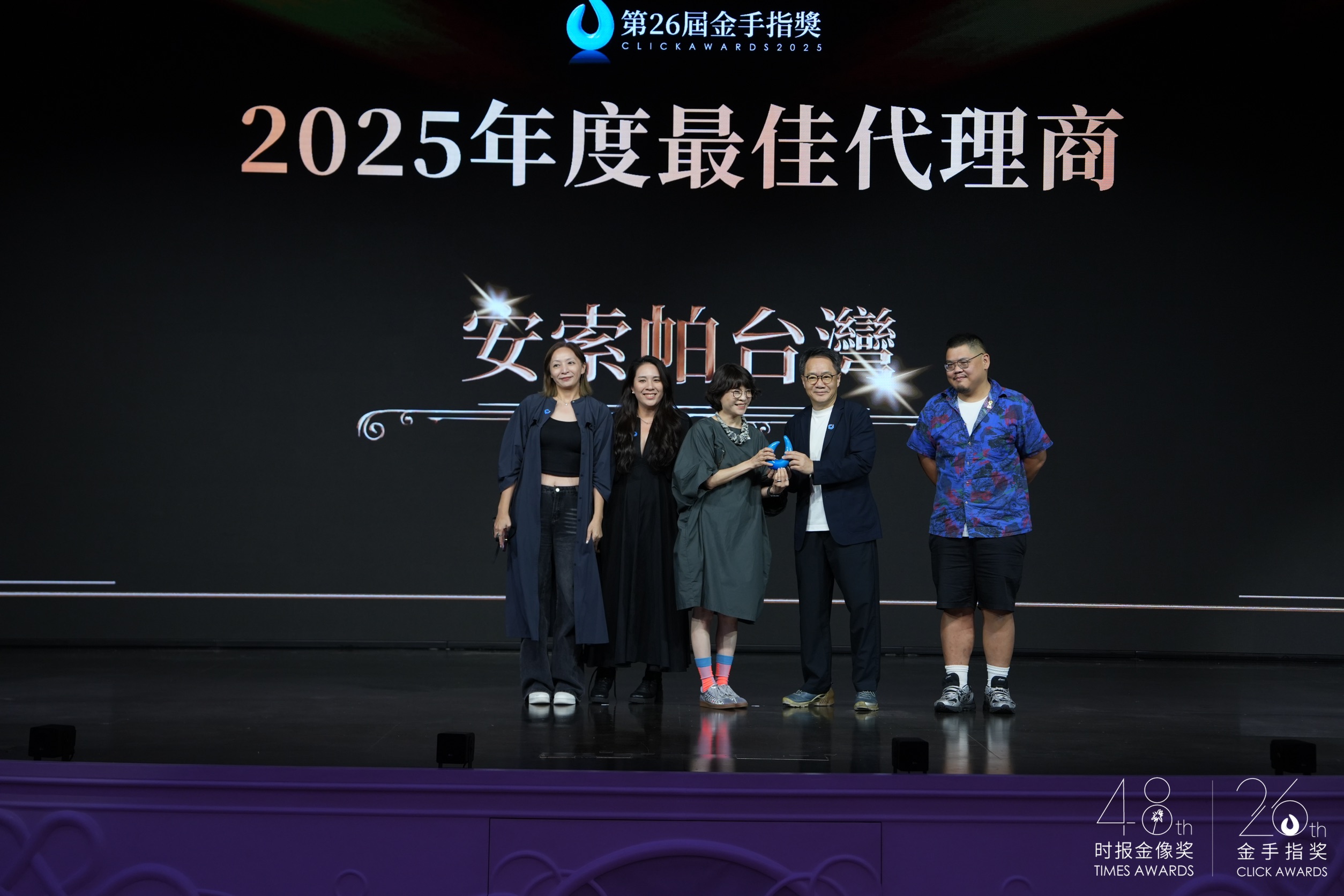 華人廣告界年度盛會、由旺旺中時媒體集團主辦的「第48屆時報金像獎」與「第26屆金手指獎」,25日在澳門永利皇宮宴會廳隆重舉行,來自兩岸三地及東南亞的創意好手齊聚一堂,AI結合公益的創新故事、數位科技的奇思妙想都在典禮上綻放火花。TOPic&Loong奪得年度最佳金像獎及最佳代理商,北京木瓜創意則贏得年度最佳金手指獎與最佳代理商。台灣最大贏家為聯廣集團(金像獎最佳代理商)與安索帕(金手指獎最佳代理商)。